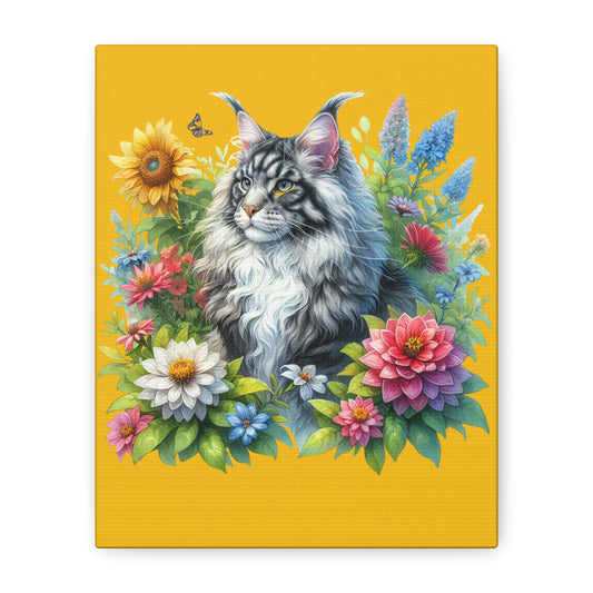 Floral Cat Canvas Art Print, Home Decor, Pet Lover Gift, Wall Art, Colorful Decor