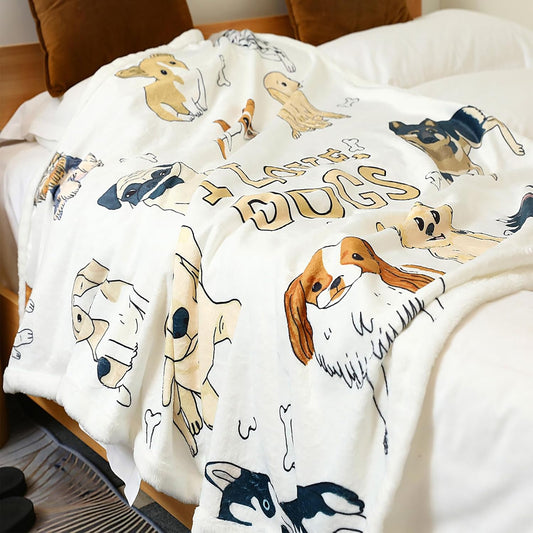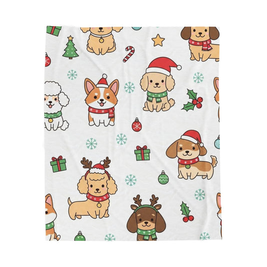 Festive Dog Print Velveteen Plush Blanket - Cozy Holiday Decor, Pet Lovers Gift, Christmas Blanket, Winter Warmth, Cute Puppies Design
